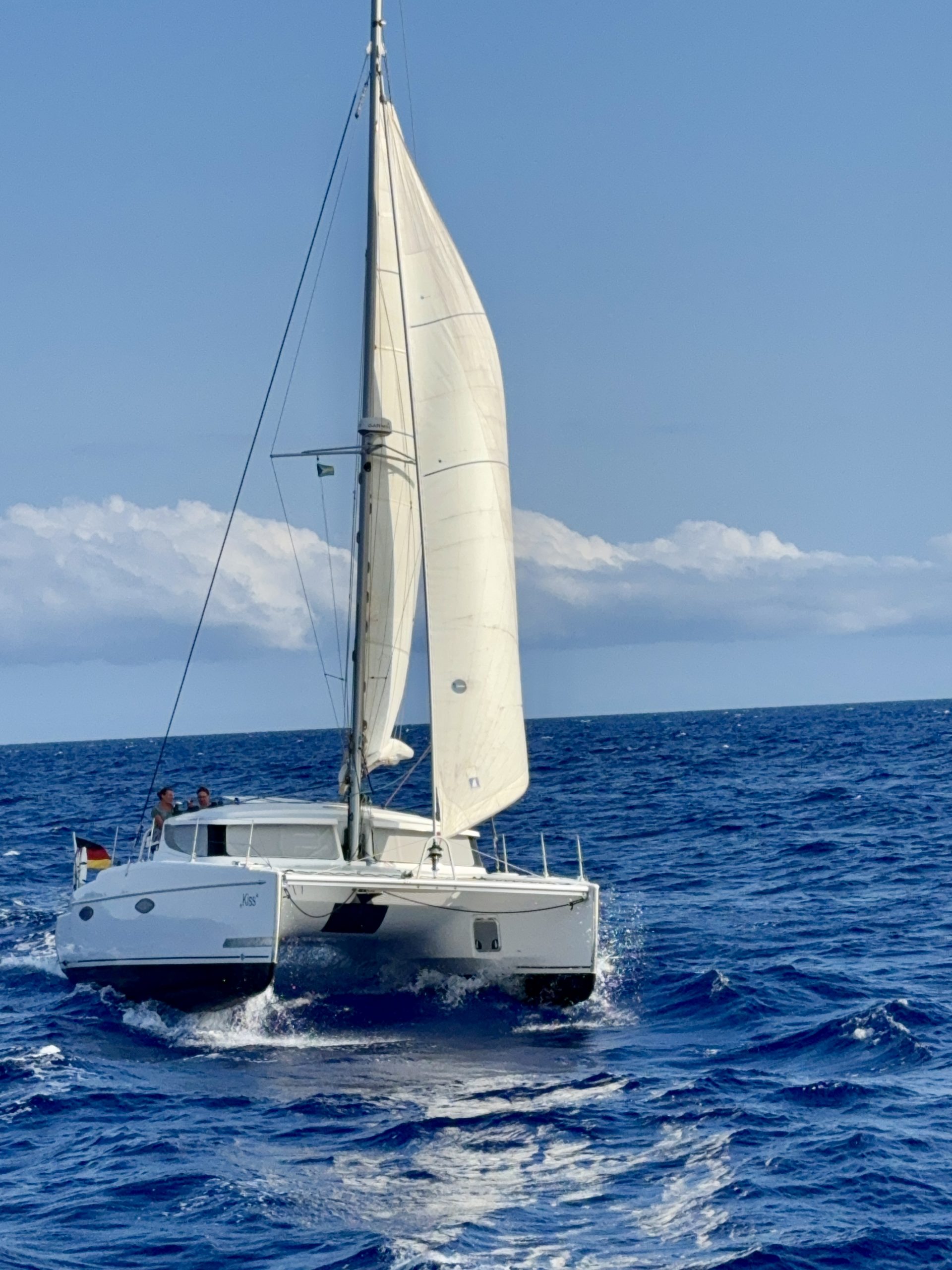 Der Segeltag startet entspannt, die Wetterprognose sieht gut aus, wir rechnen mit fünf bis sechs Tagen bis nach Great Inagua im Süden der Bahamas. Tatsächlich verläuft die Fahrt dann auch wettertechnisch genau wie geplant und fällt nach 5,5 Tagen und gut 720 Seemeilen der Anker spätabends vor Matthewtown auf Great Inagua. Hinter uns liegen abwechslungsreiche Segeltage: wir haben einen neuen KISS-Geschwindigkeitsrekord von 205 Seemeilen über 24h (Etmal) aufgestellt, sind mit Delfinen gesegelt, bei Flaute durch die Meerenge zwischen Kuba und Haiti motort und haben uns das Großsegel im 1.Reff gerissen. Letzteres ist leider das Ergebnis von drei Jahren Segeln bei zum Teil extremer Sonne und einem Segeltuch, welches eigentlich für die Nordsee vorgesehen ist. Zum Glück ist das Großsegel im 2.Reff noch intakt und segeln wir von nun an wohl einfach etwas langsamer.