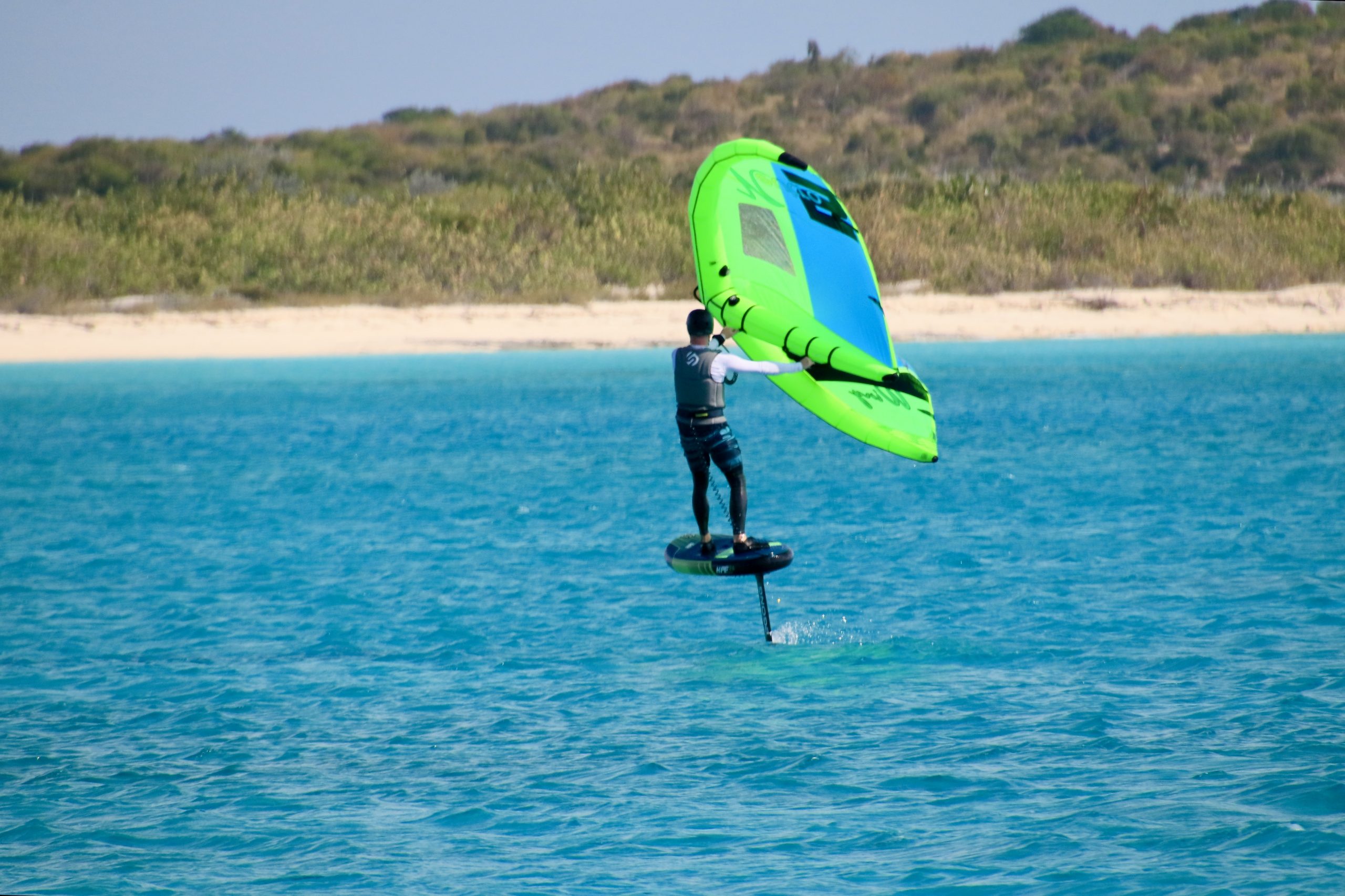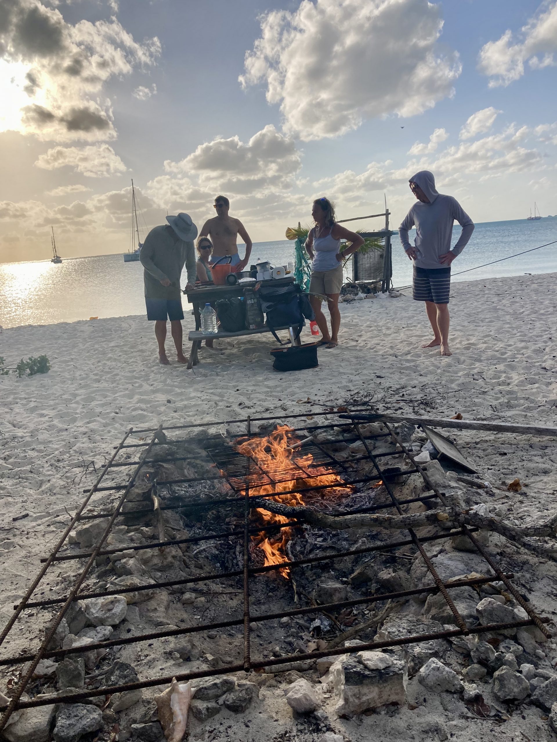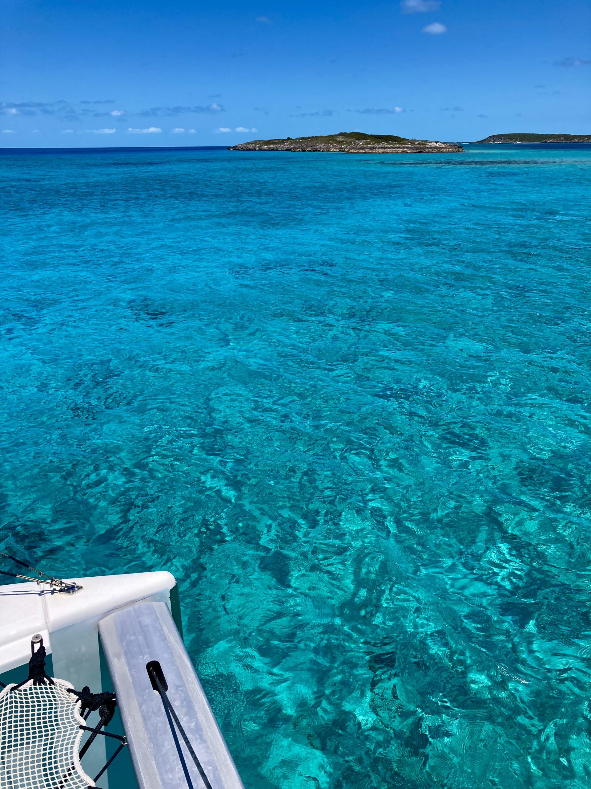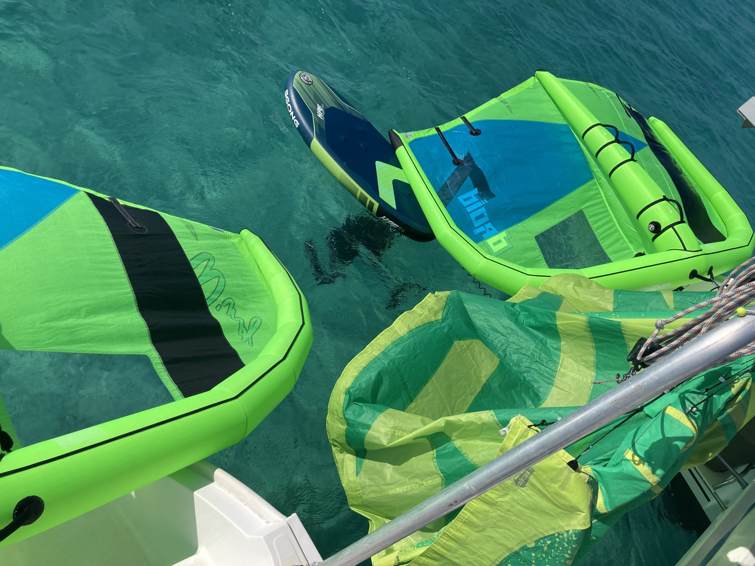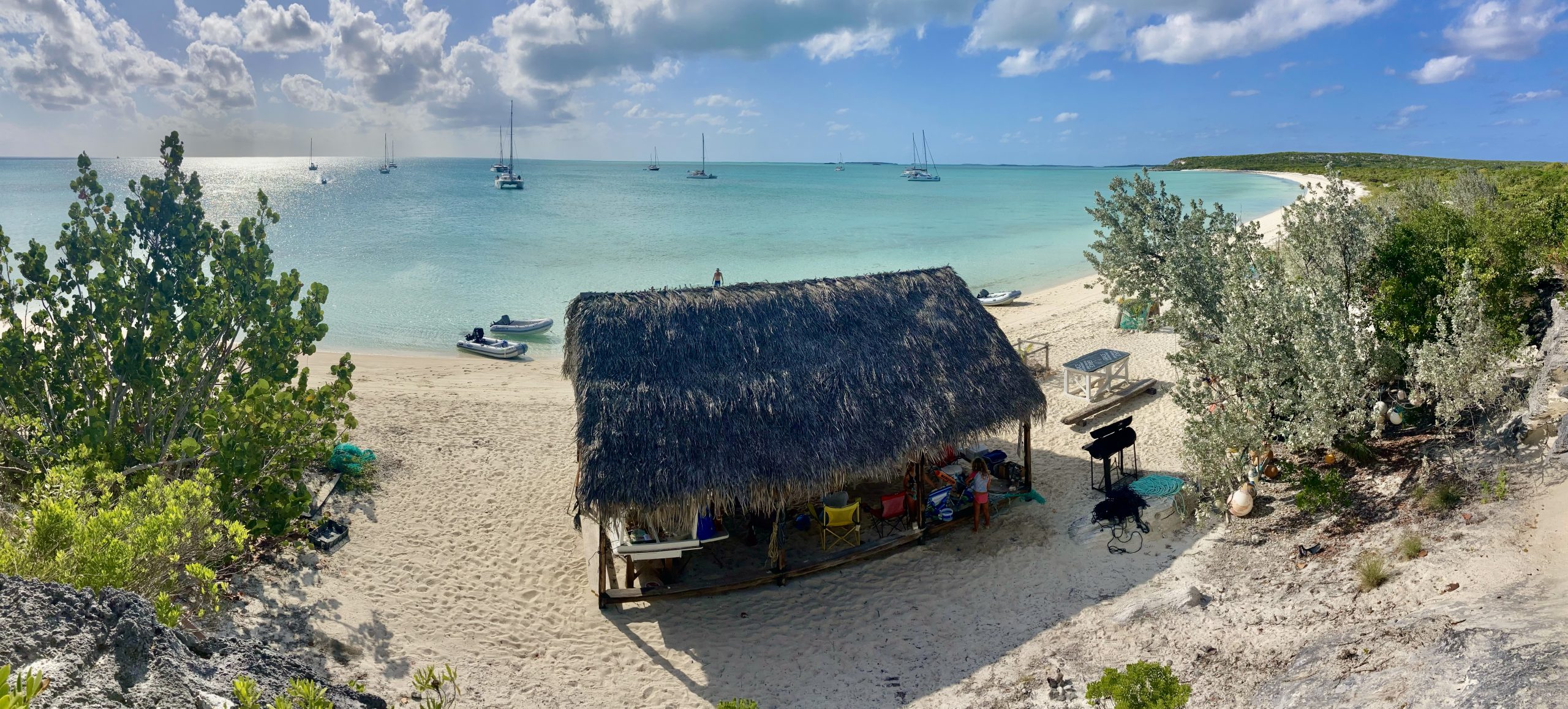 Hog Cay ist eine süße, kleine Insel, die sogar einen eigenen Yachtclub hat. Das Vereinsheim ist ein hölzerner Pavillon am Strand, Mitglied ist jeder Segler, der vor Anker liegt, zum Sundowner trifft man sich auf ein selbstmitgebrachtes Getränk. Wir genießen den Kontakt zu anderen Seglern und die entspannte Atmosphäre, gehen viel Wingfoilen und gucken stundenlang einfach nur auf dieses unglaubliche Türkis!