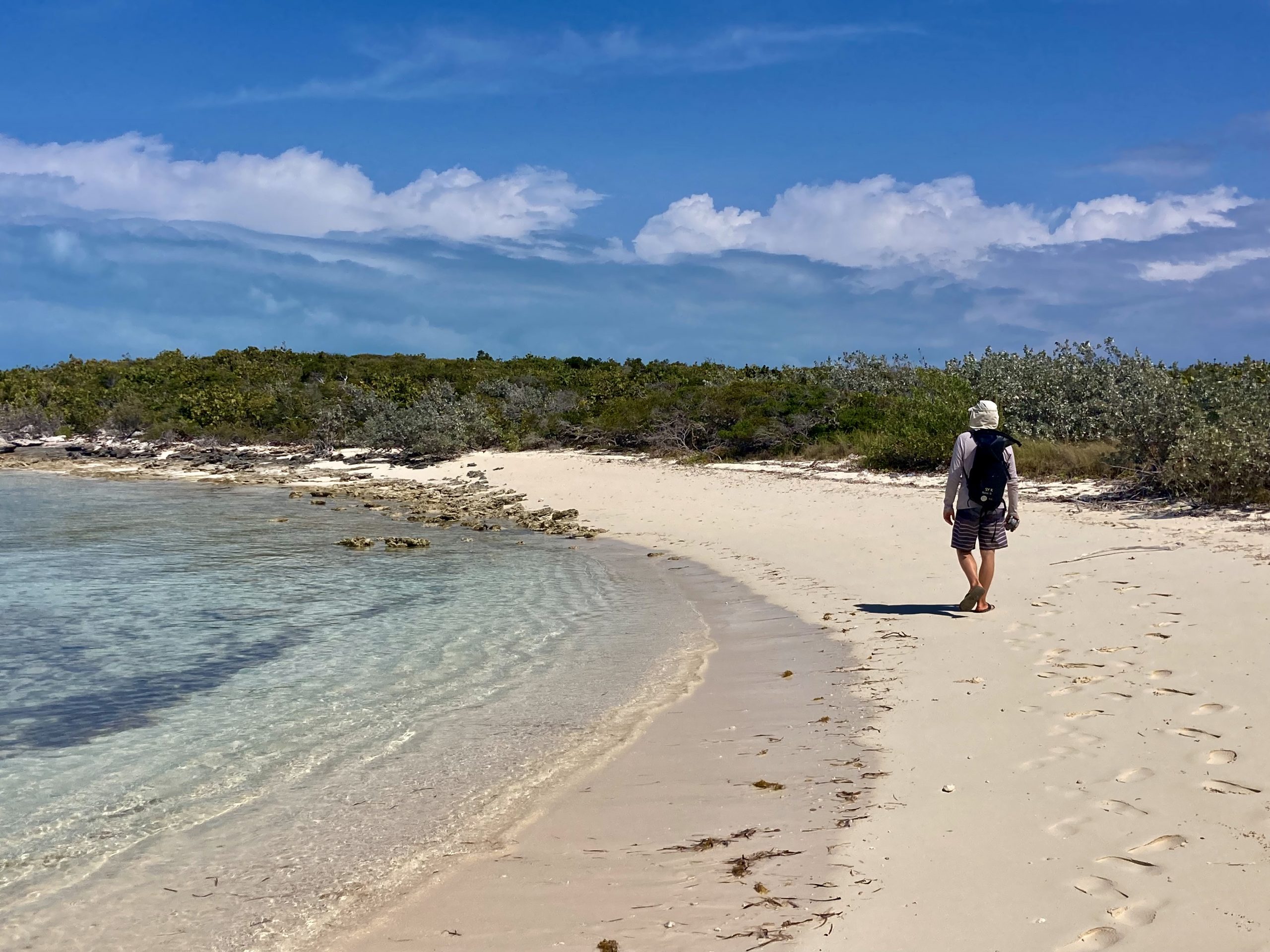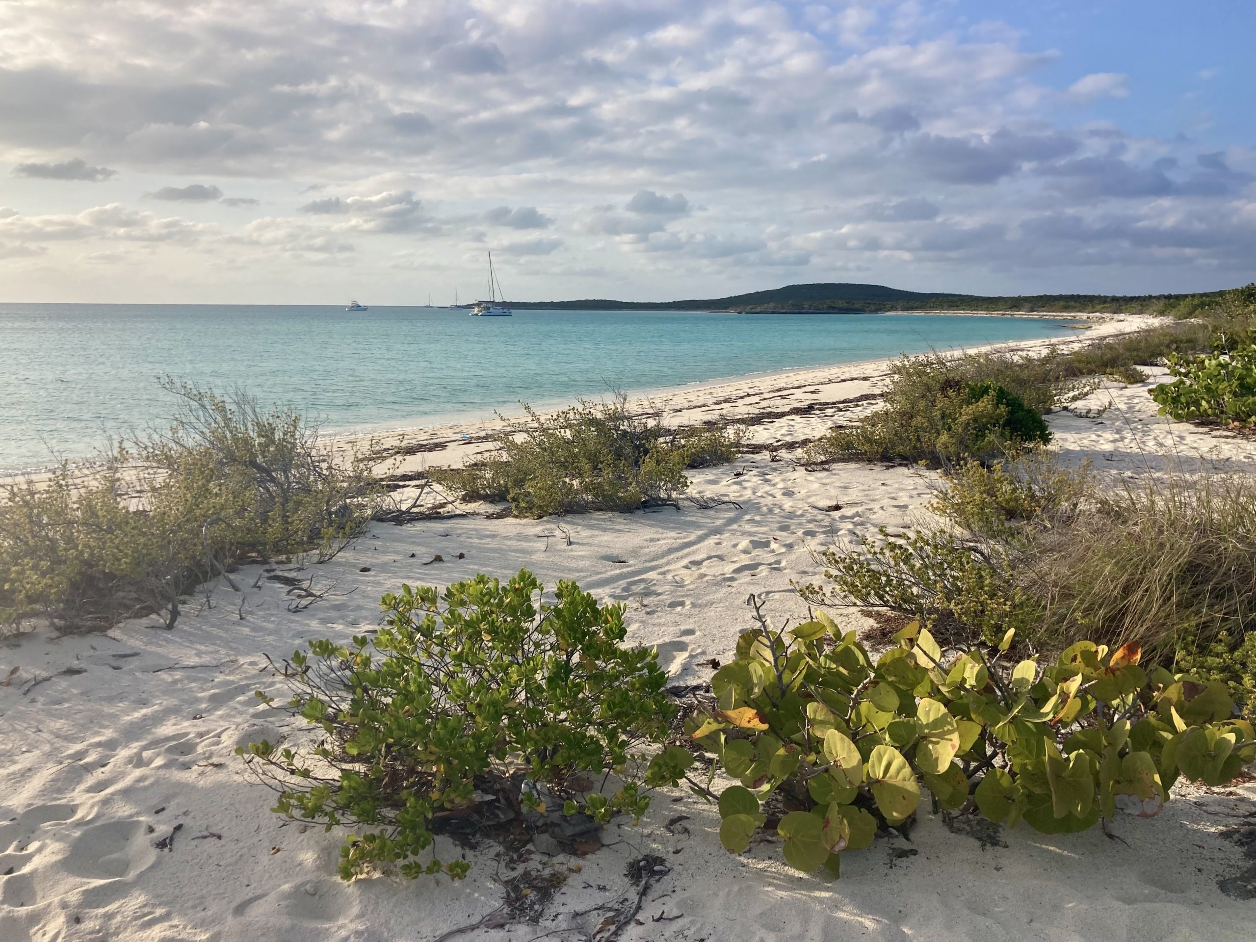 Von Hog Cay aus hangeln wir uns entlang der Inselkette nach Norden und lassen dabei fast keinen Ankerplatz aus. Auf jeder Insel gehen wir an Land: mal gibt es einen Wanderweg quer über die Insel, meistens markiert durch Treibgut, welches von Seglern an die Büsche und Bäume gehängt wird, mal beschränkt sich der Landgang auf den Strand. Wenn der Wind ordentlich bläst (und das tut er um diese Jahreszeit fast immer), gehen wir Kitesurfen und Wingfoilen…