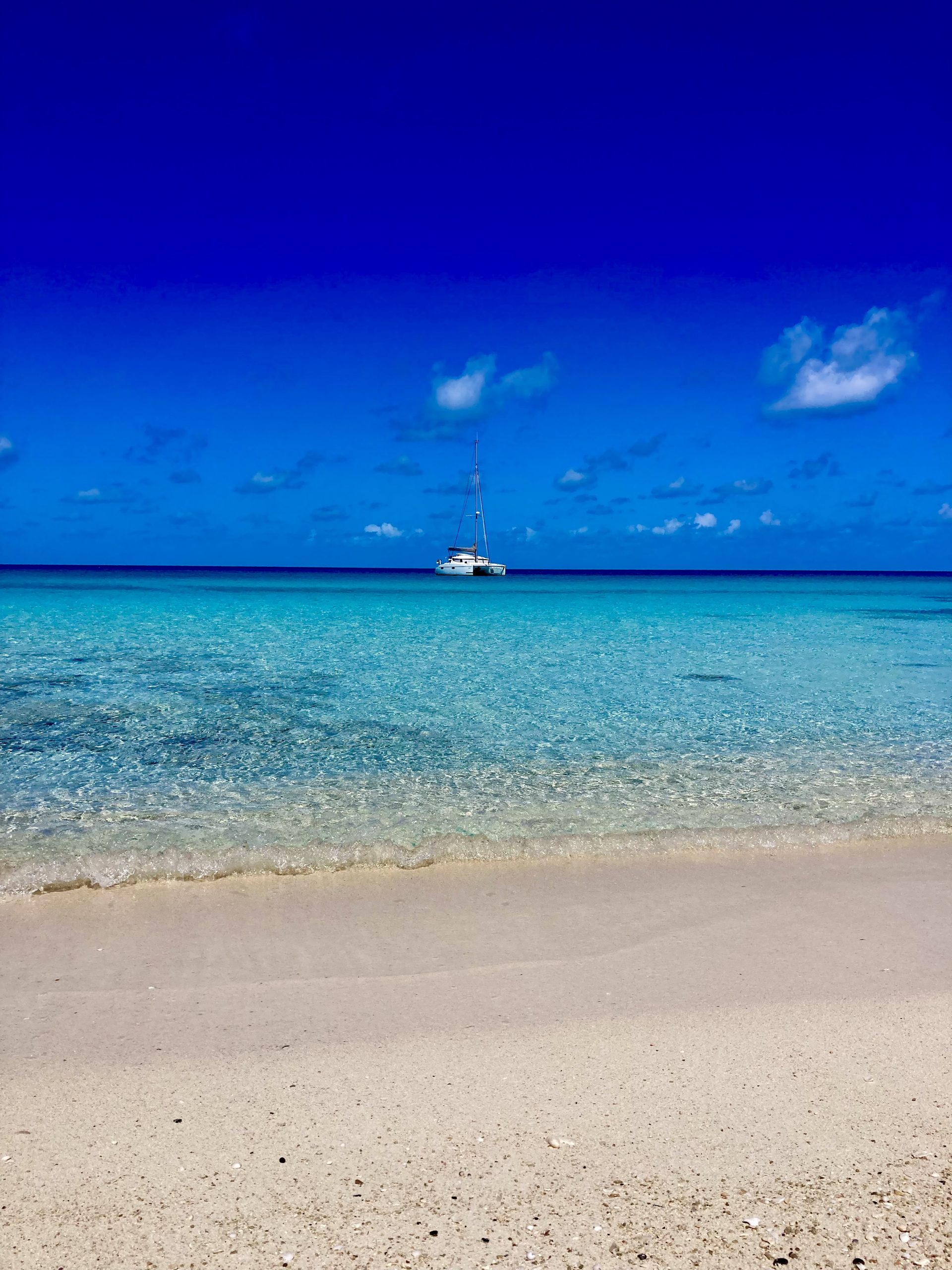 Zurück aber nach Matthewtown: an unserem ersten Morgen wachen wir auf wunderbar strahlendem türkisem Wasser auf. Ein Traum! Nachdem wir erst einmal baden waren, genießen wir ein ausgedehntes Frühstück und räumen das Boot auf – nach jeder Passage ist es unter Deck immer überraschend unordentlich…